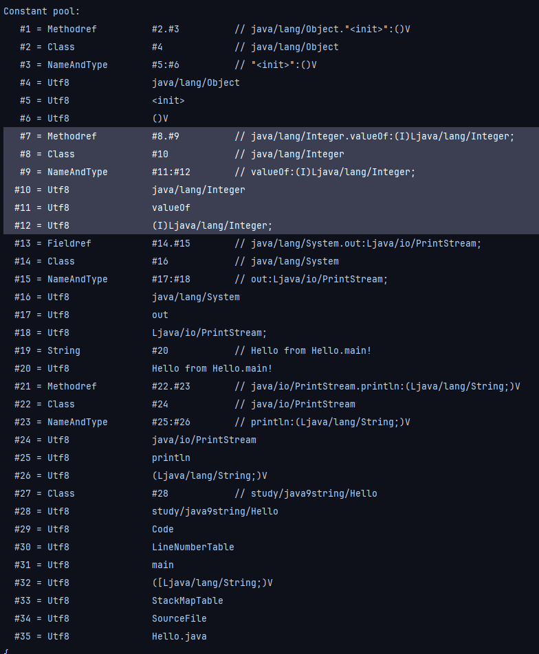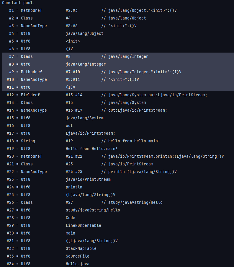 #22 = Utf8 study/java9string/Hello